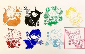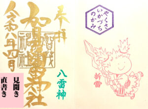 月替わりで八柱の雷神スタンプを押印して、御朱印をお書きします。