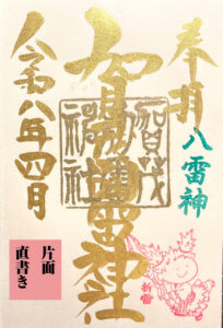 4月の『八雷神(やくさいかづちのかみ)』御朱印(直書き)頒布のご案内です
