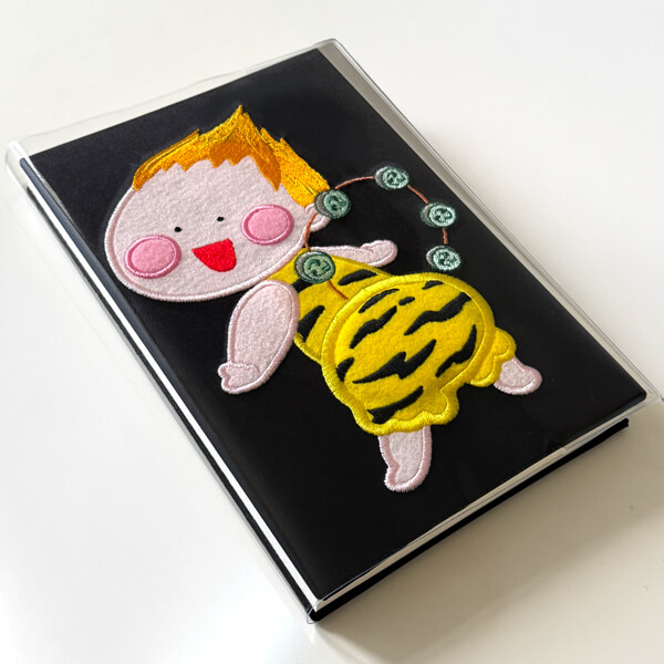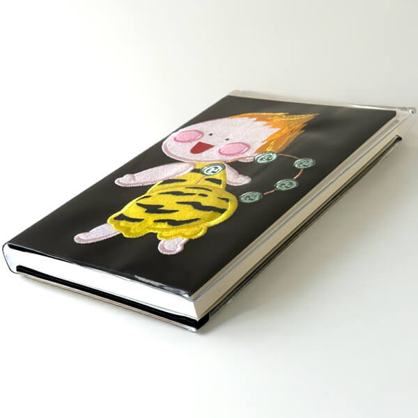 当社オリジナルキャラクター雷くんのもこもこしたフェルト刺繍使用の立体的な表紙(おしりがキュート)。